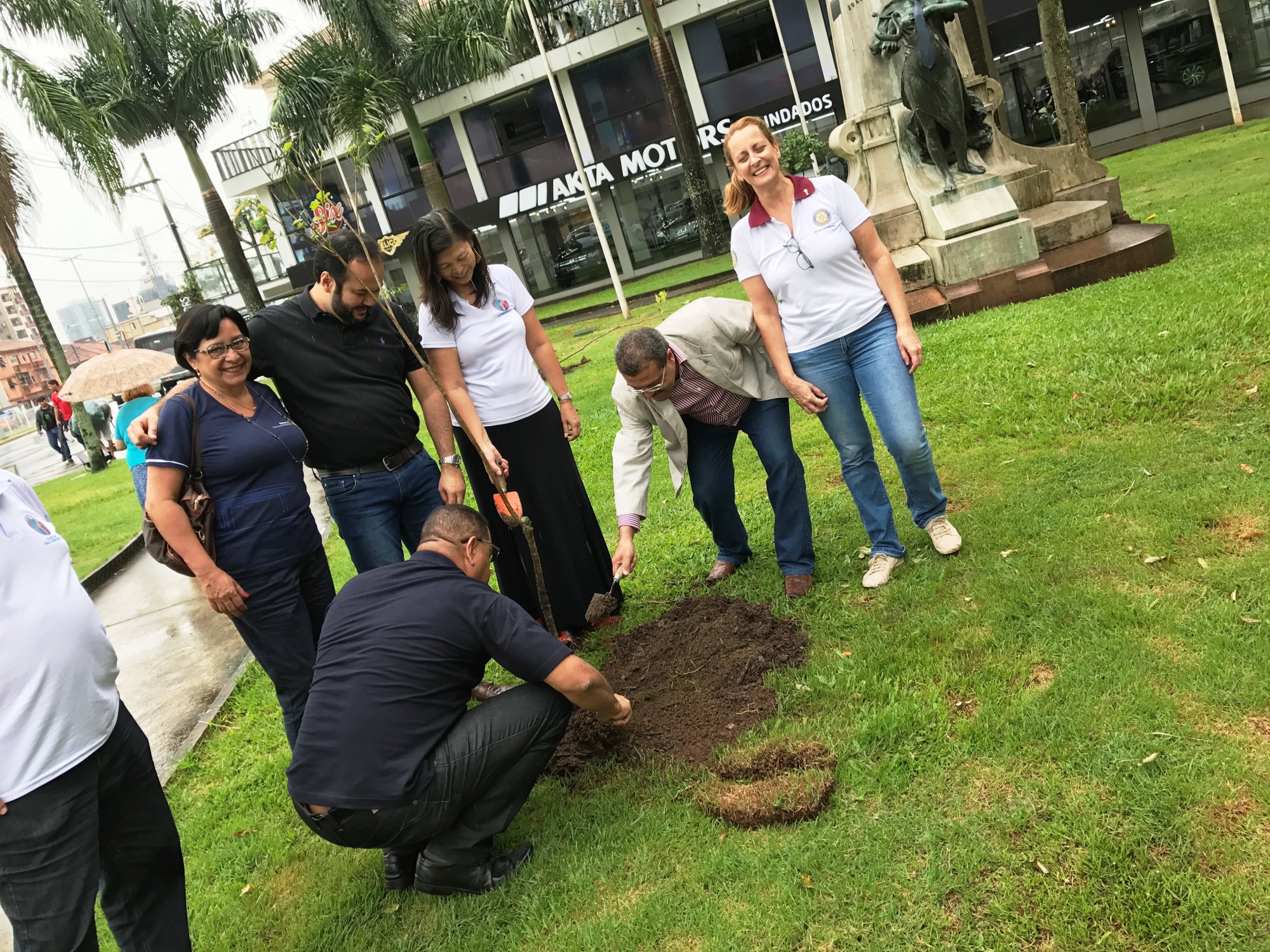 Hoje, em cerimônia realizada na Secretaria do Meio Ambiente de Santos, com a presença do Secretário Municipal do Meio Ambiente, sr. Marcos Libório e toda a sua equipe, Marcos Franco, presidente da Comissão Distrital (4420) da Fundação Rotária, dos Governadores Assistentes de Rotary das áreas 12 e 13, Nivaldo Flores e Antonio Henrique, 8 presidentes dos RCs de Santos e mais rotarianos convidados, foi realizada a cerimônia de entrega simbólica de 506 mudas de árvores, sendo 500 ipês e 6 palmeiras imperiais, para cumprir o objetivo do projeto mundial do Presidente de Rotary International, Ian em que cada rotariano plante uma árvore.
