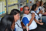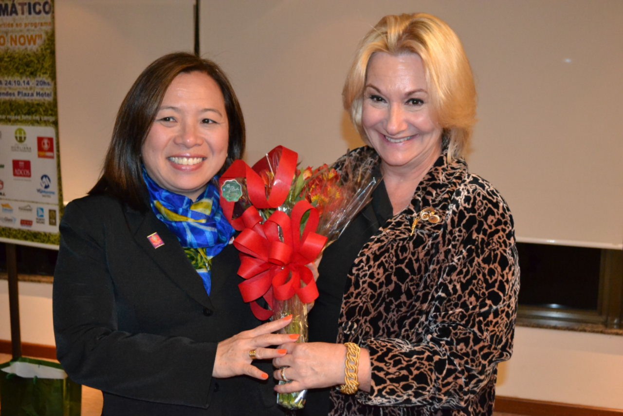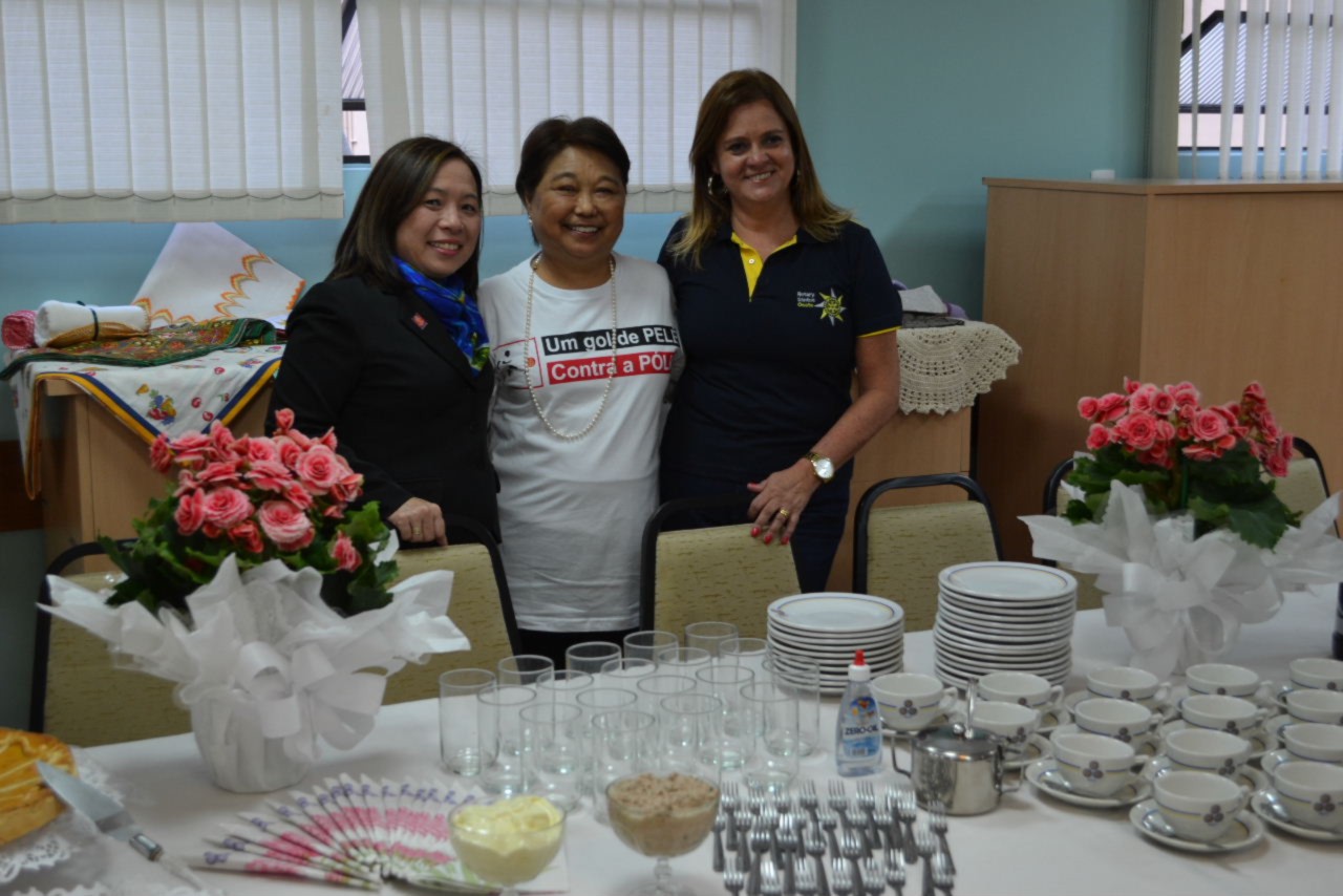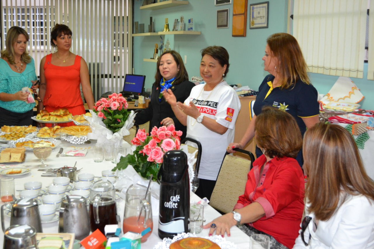 A tarde continuou animada, com a reunião das mulheres dos companheiros do clube, que estiveram na ASFAR Santos, presidida por Mônica Varella, que deu boas vindas à Suma Shimuta, que ficou lisonjeada com a receptividade e carinho das mulheres do Distrito 4420.