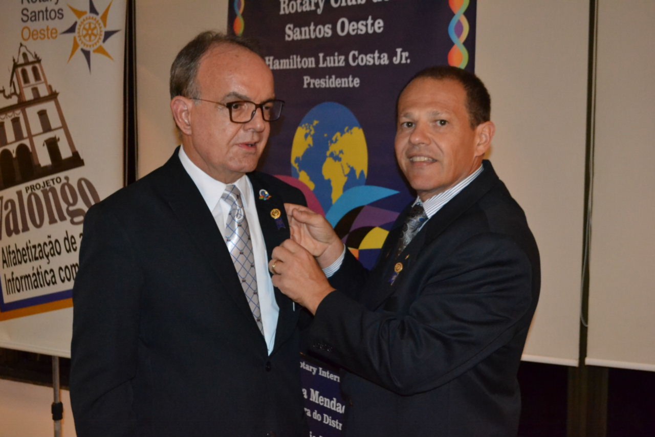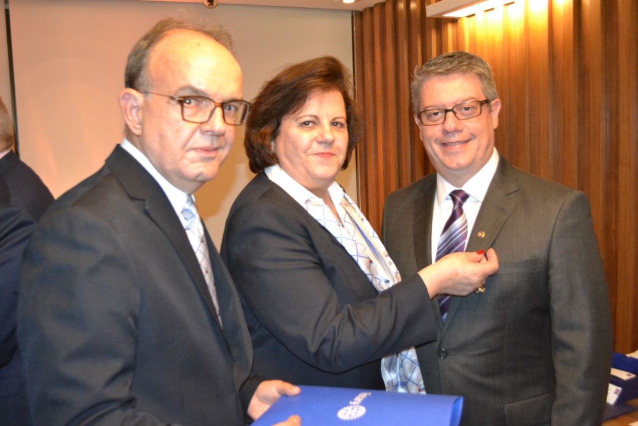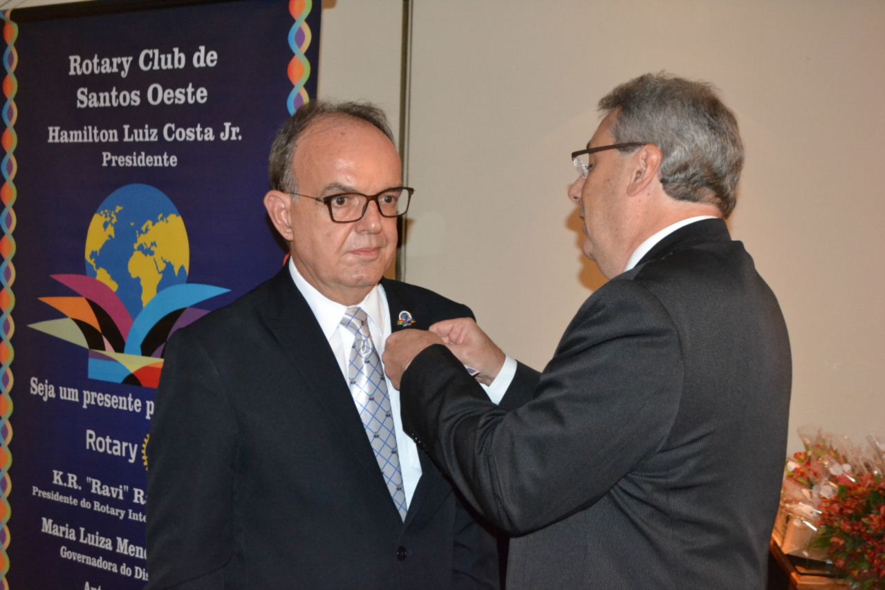 Os companheiros André Luiz Simões Andrade e Marcos Anselmo Ferreira Franco, foram homenageados com um Pin rotário especial, outorgado por Rotary International aos rotarianos que empossaram novos associados aos clubes.