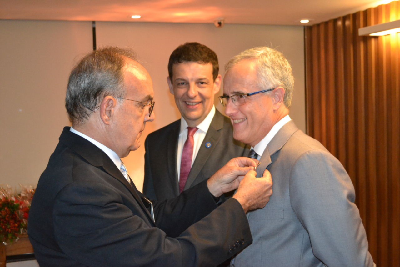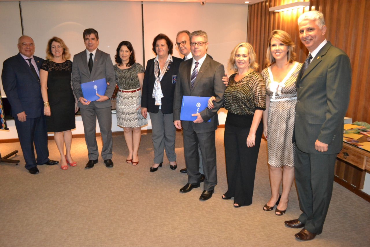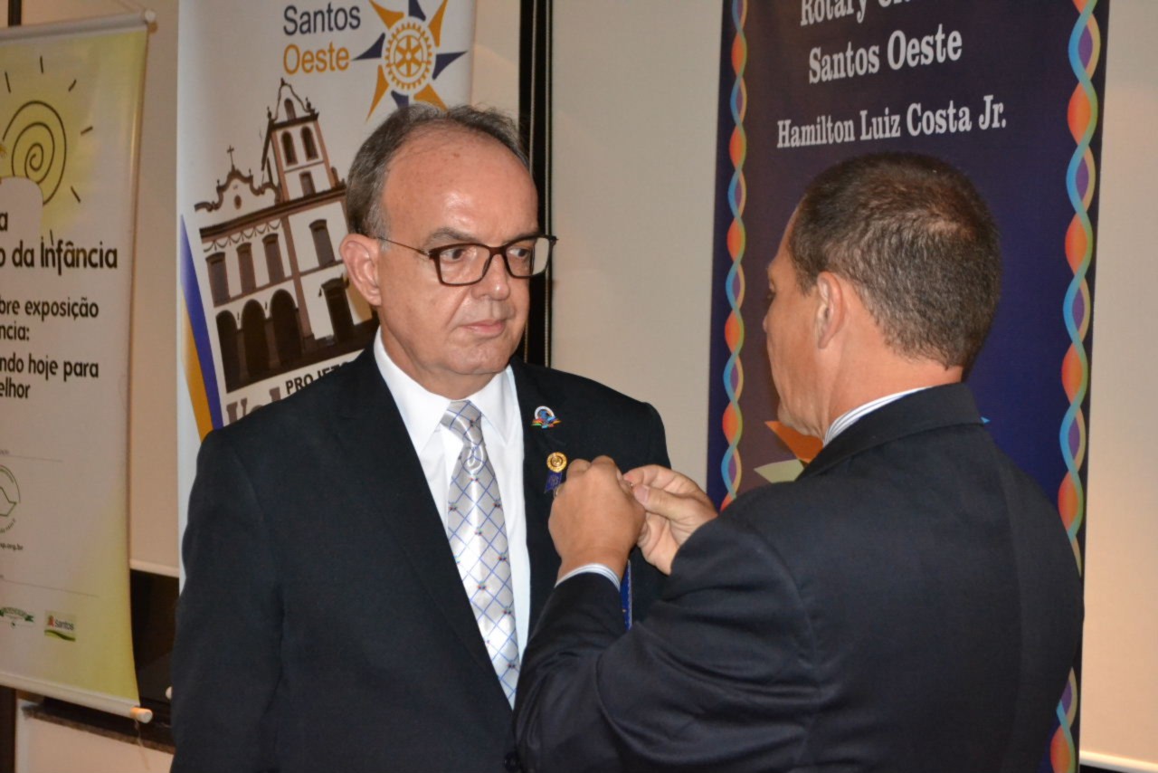 Os companheiros André Luiz Simões Andrade e Marcos Anselmo Ferreira Franco, foram homenageados com um Pin rotário especial, outorgado por Rotary International aos rotarianos que empossaram novos associados aos clubes.