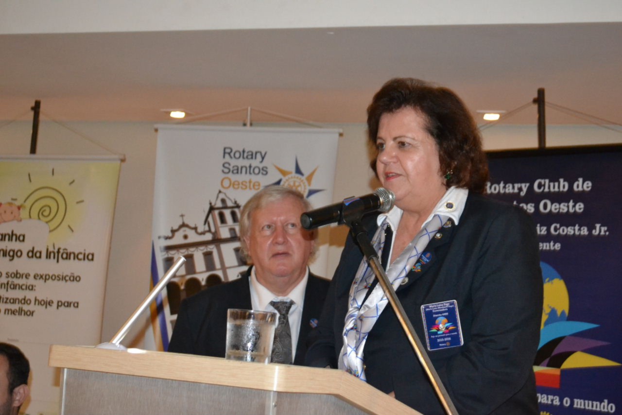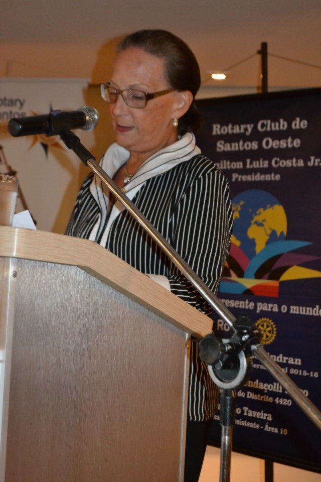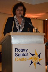 A governadora manifestou toda sua alegria em poder conhecer o clube e seus projetos que muito tem agregado ao distrito e principalmente à comunidade que é a mais beneficiada pelo ideal de servir dos rotarianos.